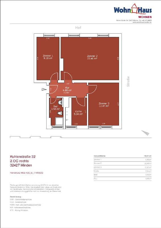 Diese gemütliche 3-Zimmer-Wohnung in der beliebten Kuhlenstraße 32 in Minden bietet eine ideale Raumaufteilung für Singles, Paare oder eine kleine Familie. Der gut geschnittene Grundriss schafft ein angenehmes Wohngefühl und lässt sich vielseitig einrichten.