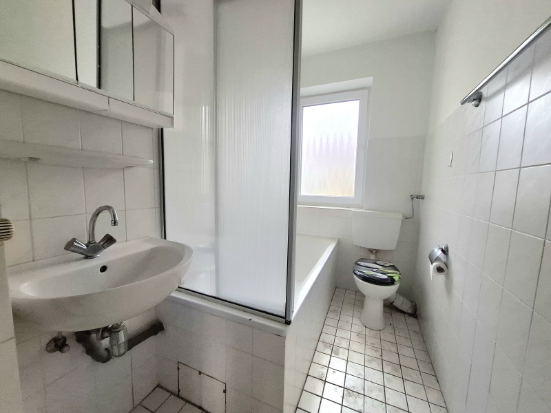 Die Wohnung befindet sich im 1.Obergeschoss eines sehr gepflegten wärmegedämmten Hauses und ist mit einem neu weiß gefliesten Duschbad und einem Balkon ausgestattet.