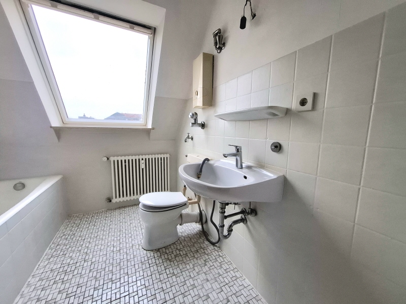 Die Wohnung befindet sich im Dachgeschoss und ist mit einem gefliesten Wannenbad sowie einer Loggia ausgestattet. Ein Kellerraum gehört selbstverständlich ebenfalls zu dem angebotenen Objekt.
