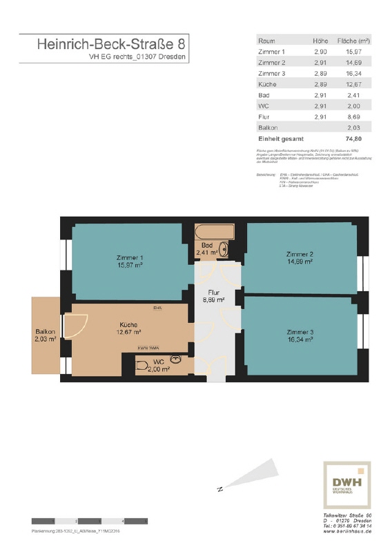 Die Kaution beträgt 3 Nettokaltmieten.