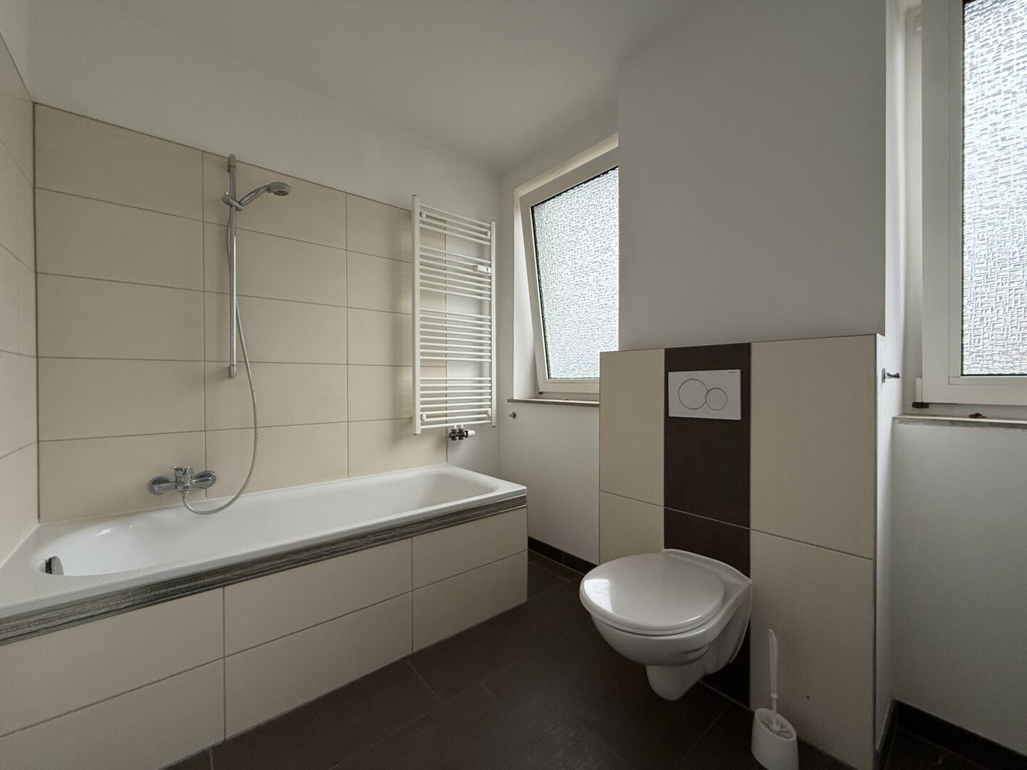 - modern gefliestes Bad mirt Wanne und Fenster